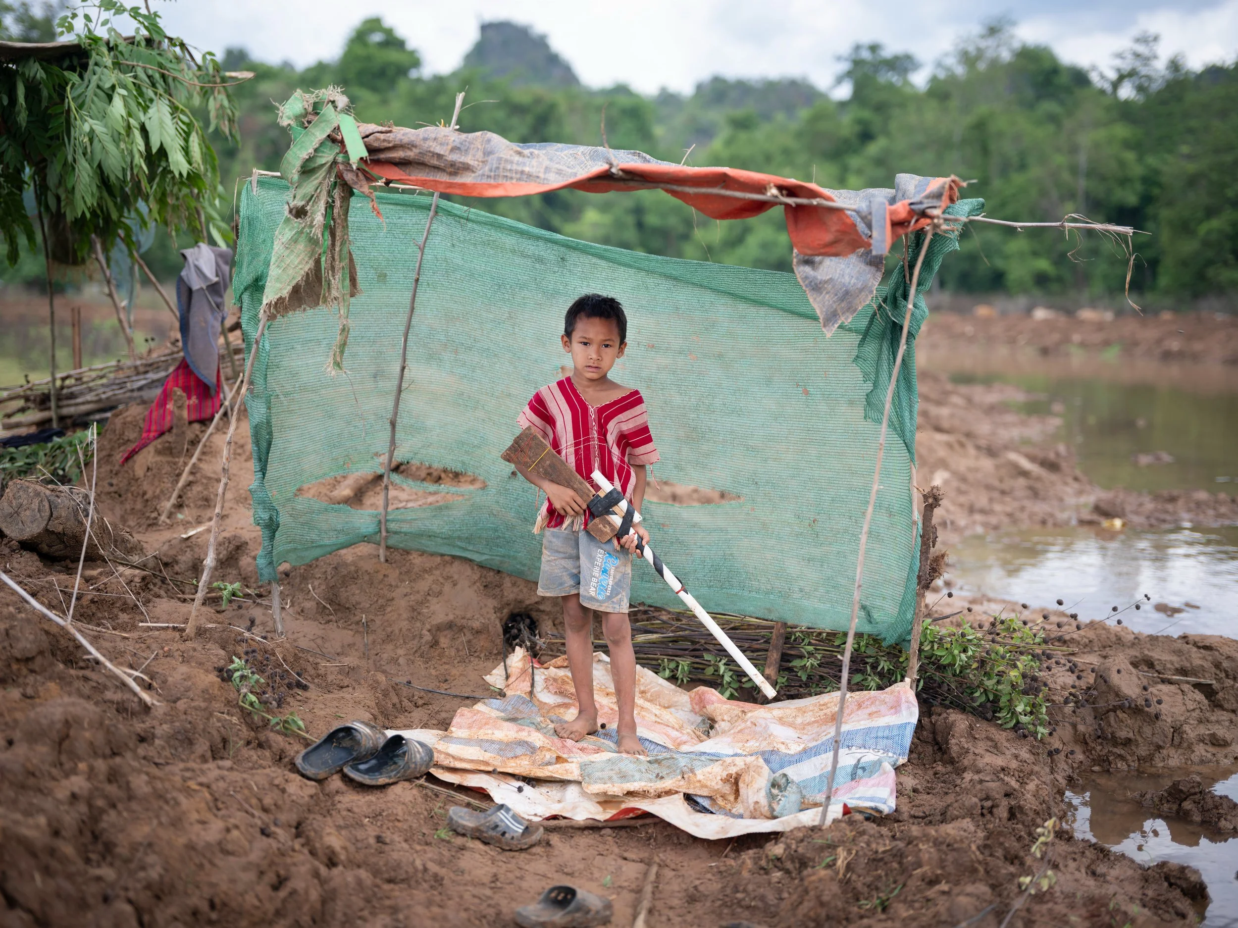 Youth playing in their new village after they had to relocate for the Laos-China railway. Laos, 2022
