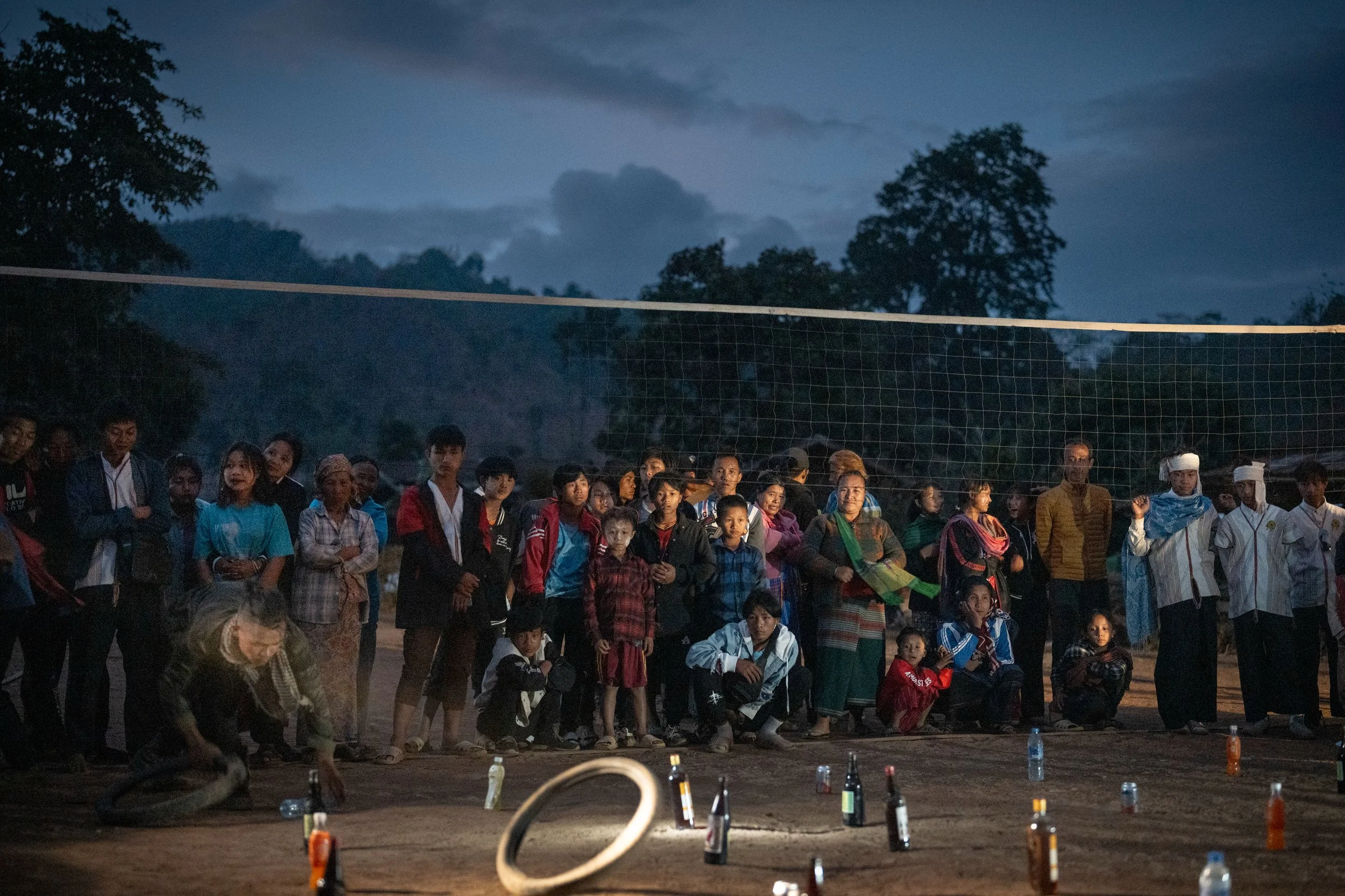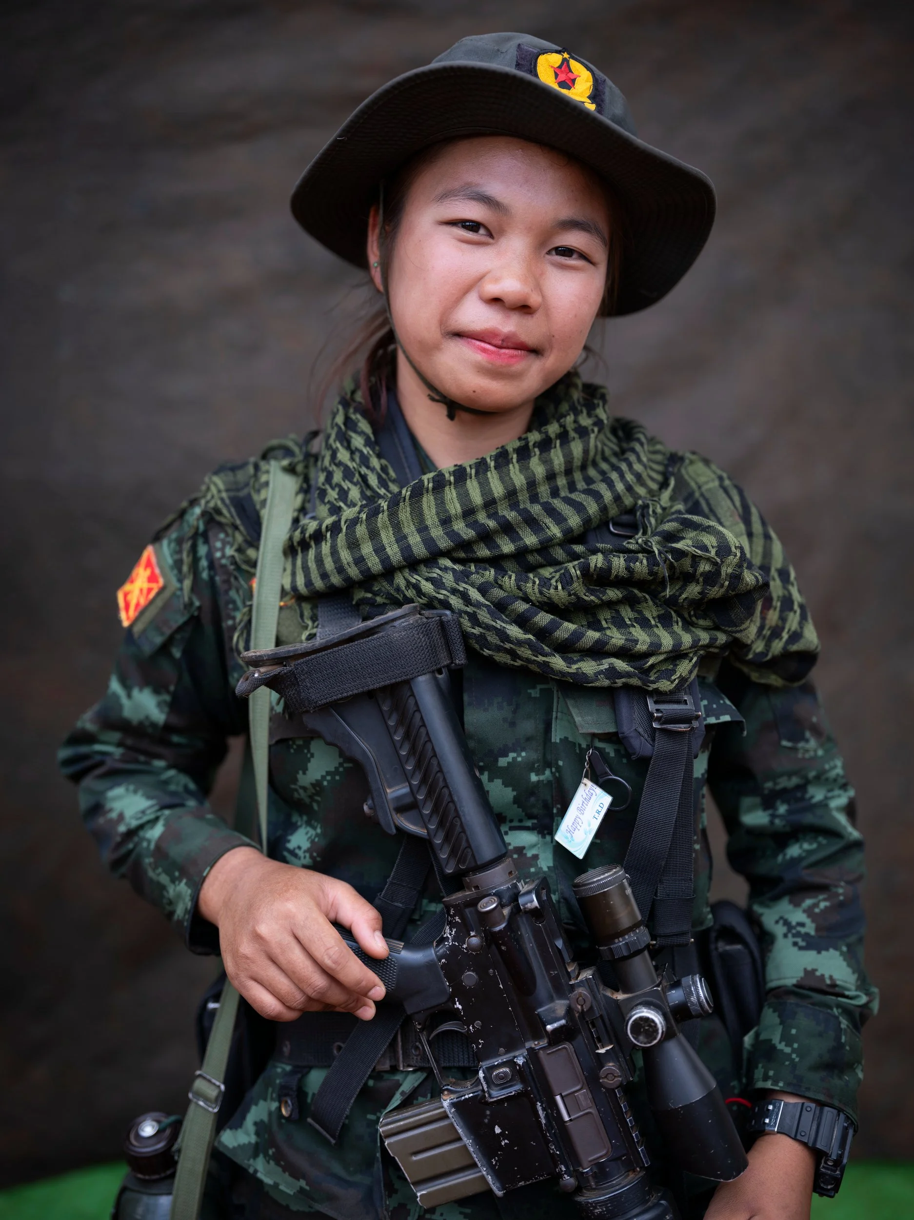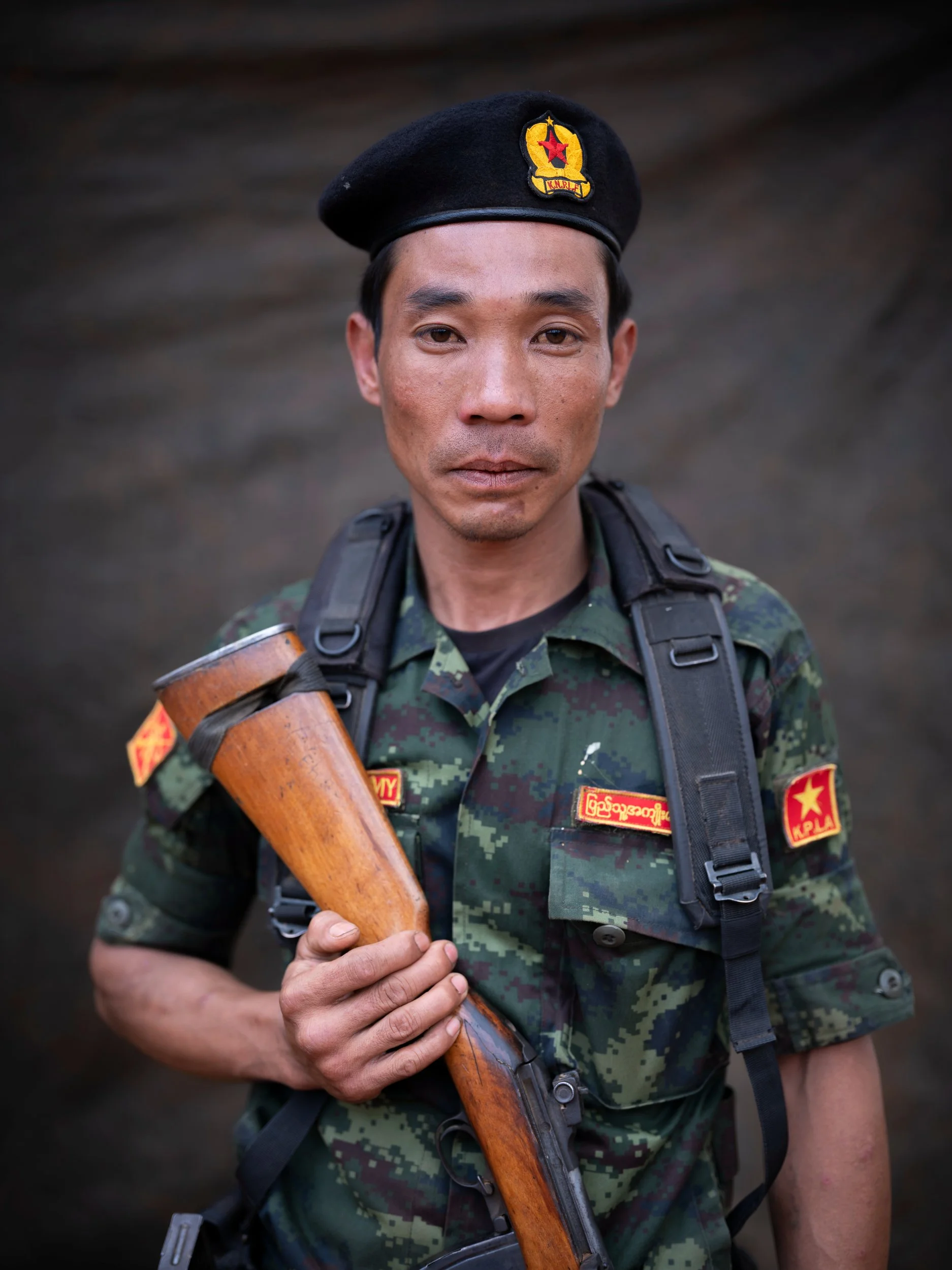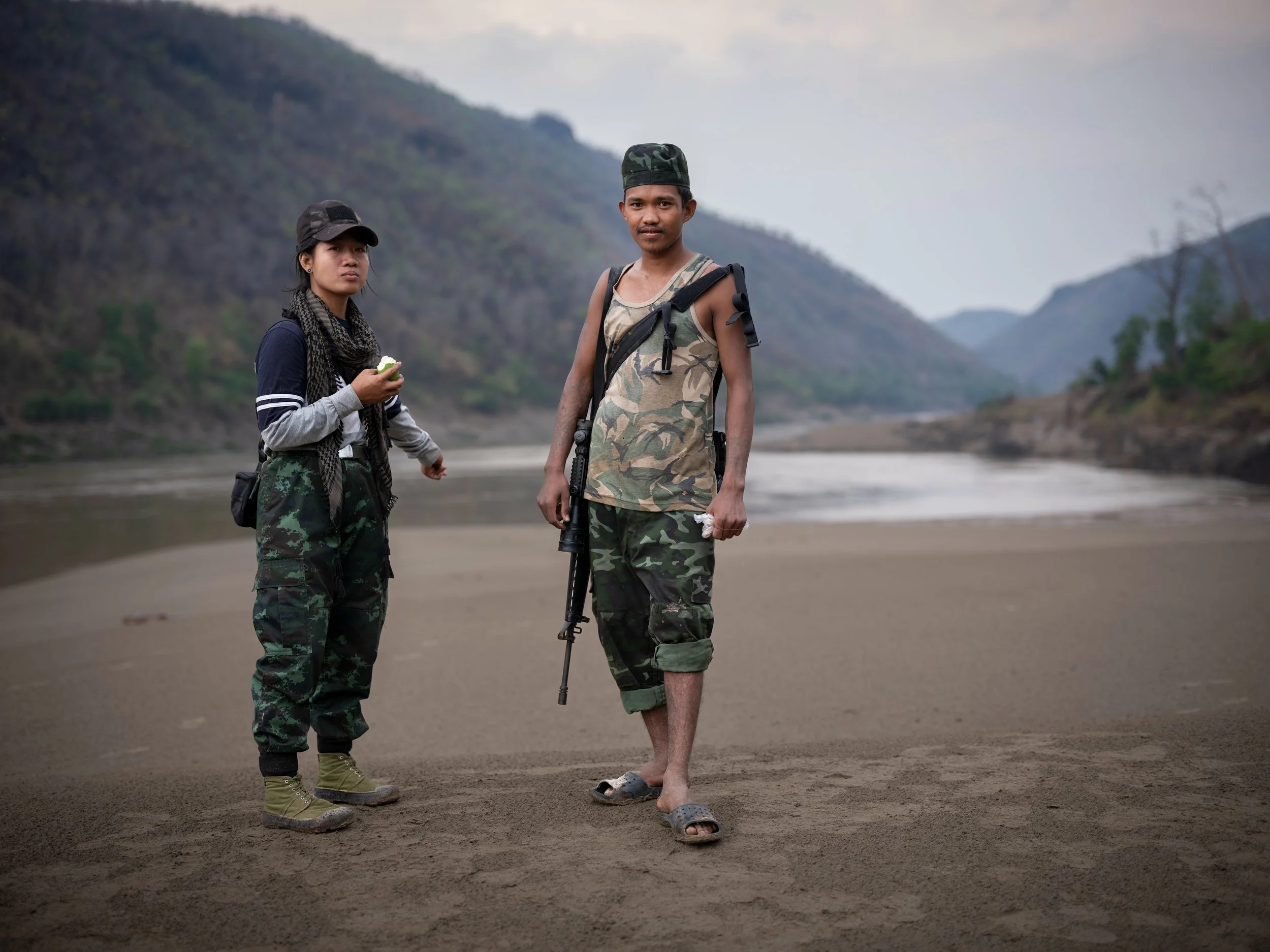 A KNPDP fighter keeps watch during the wake of his fallen comrade. Myanmar, 2025