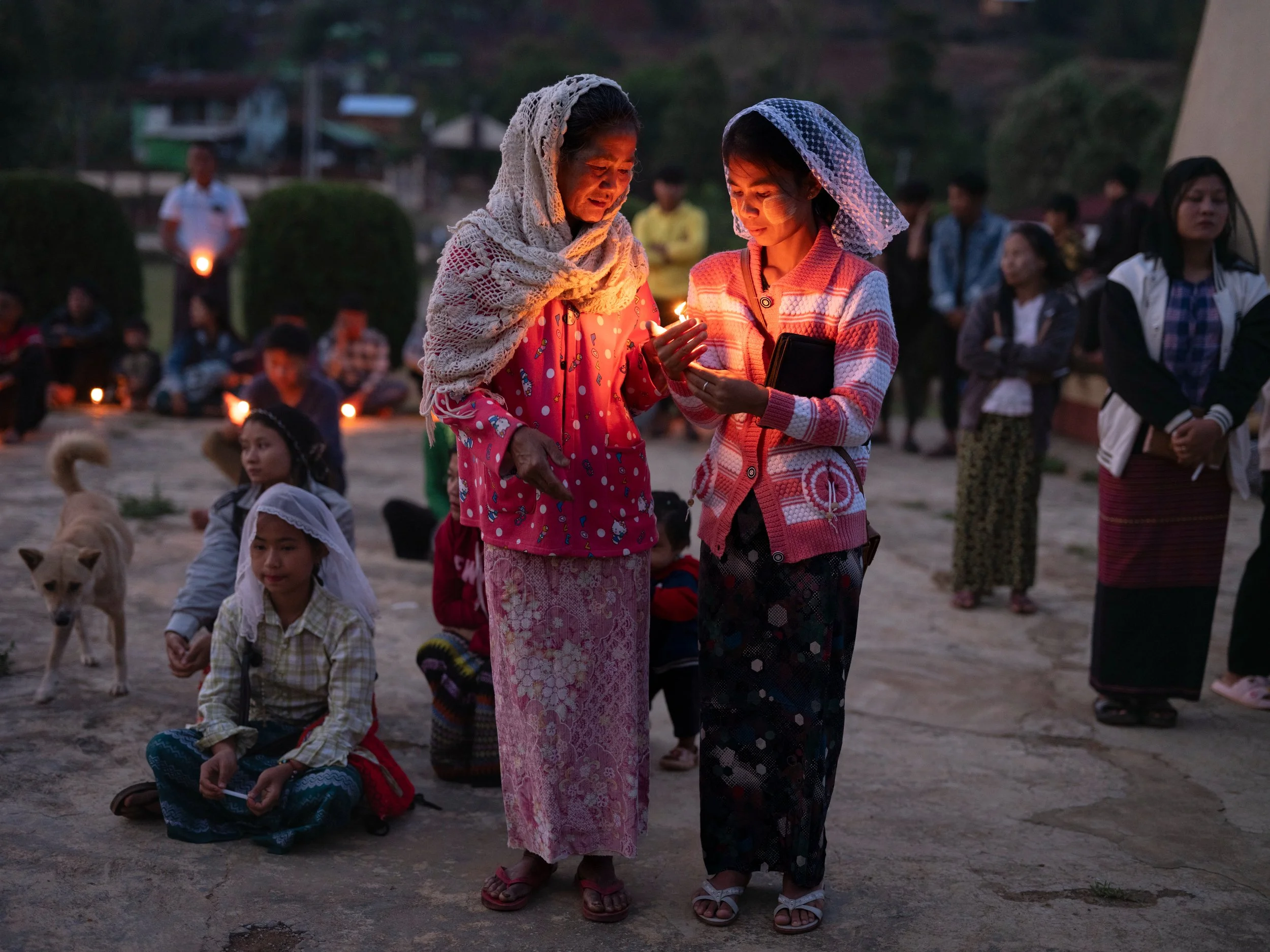 Refugees find solace during Easter Mass at church. Myanmar, 2025