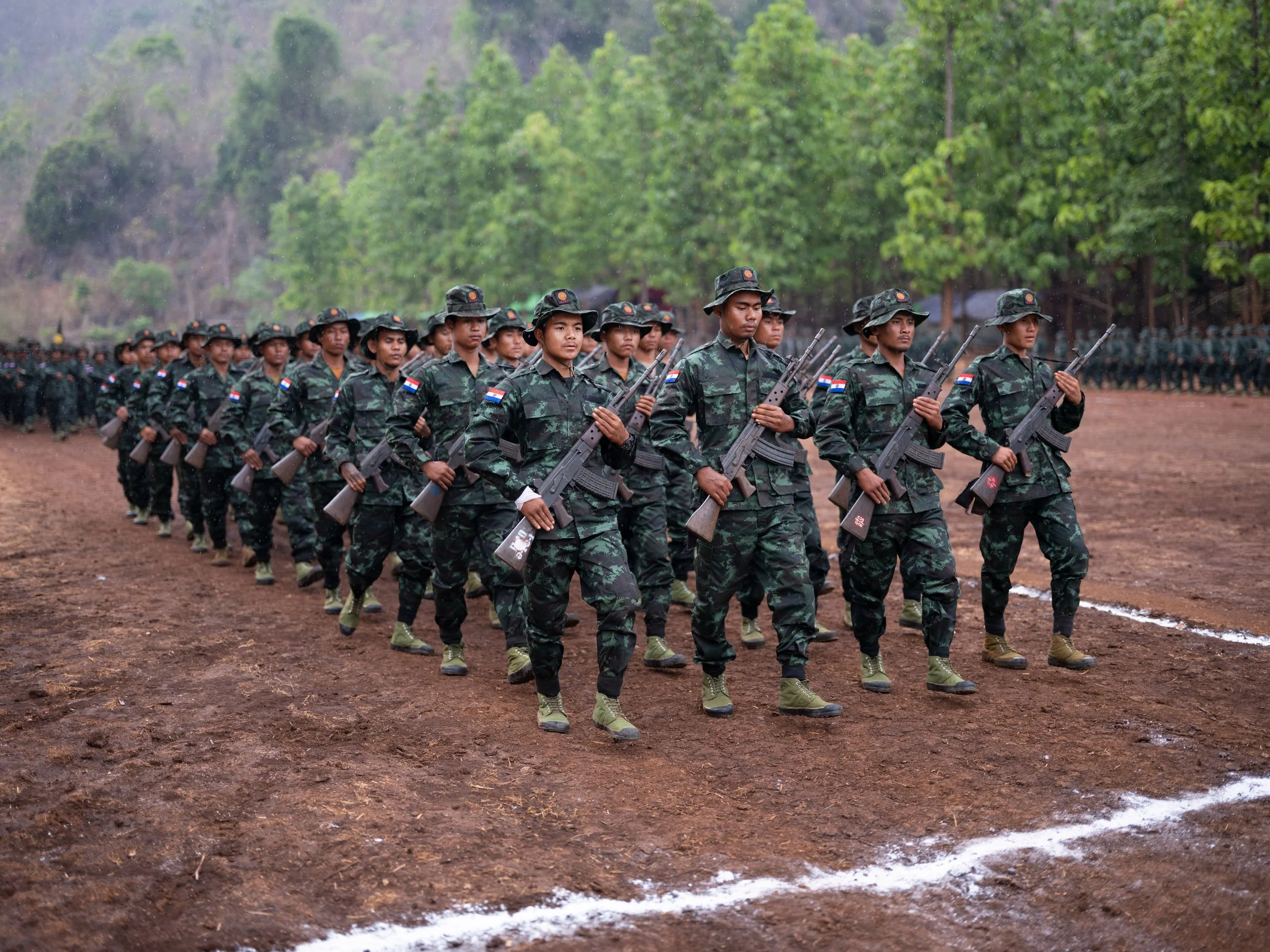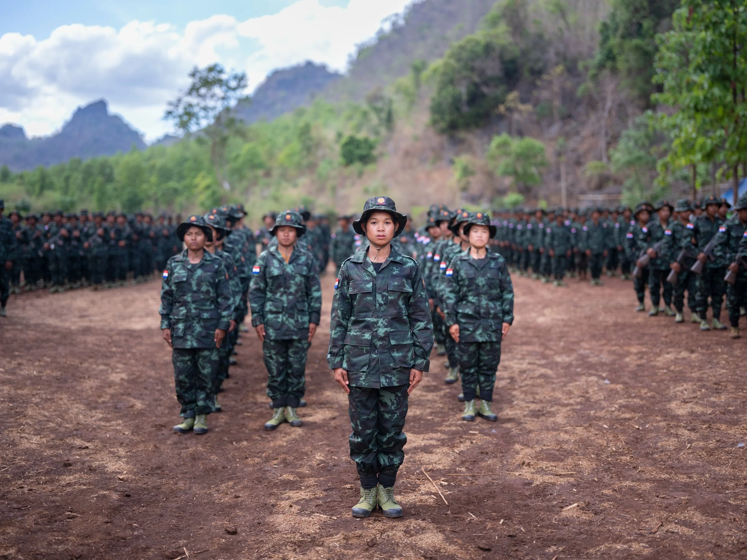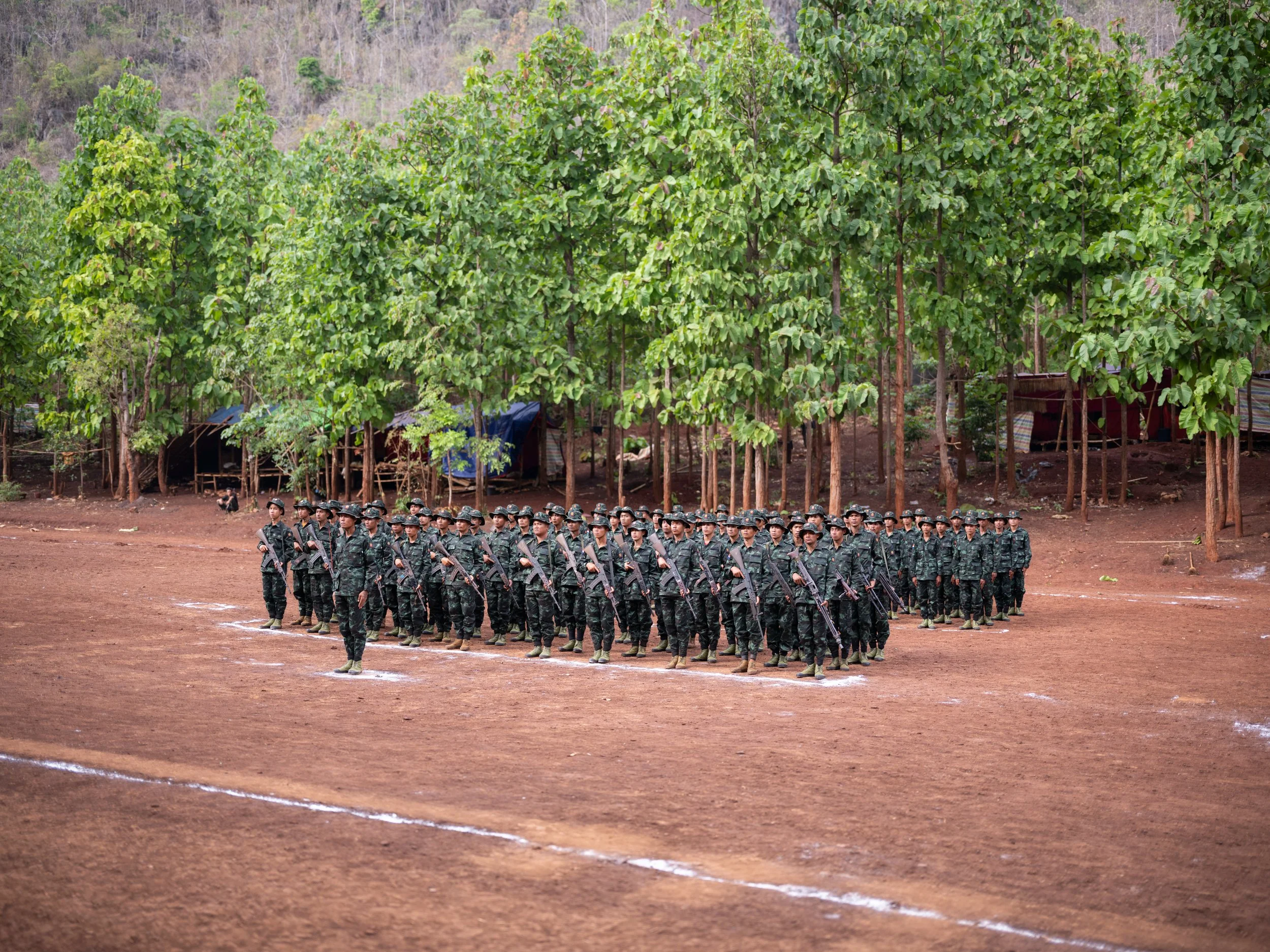 Newly trained recruits of the KNDF resistance forces. Myanmar, 2025