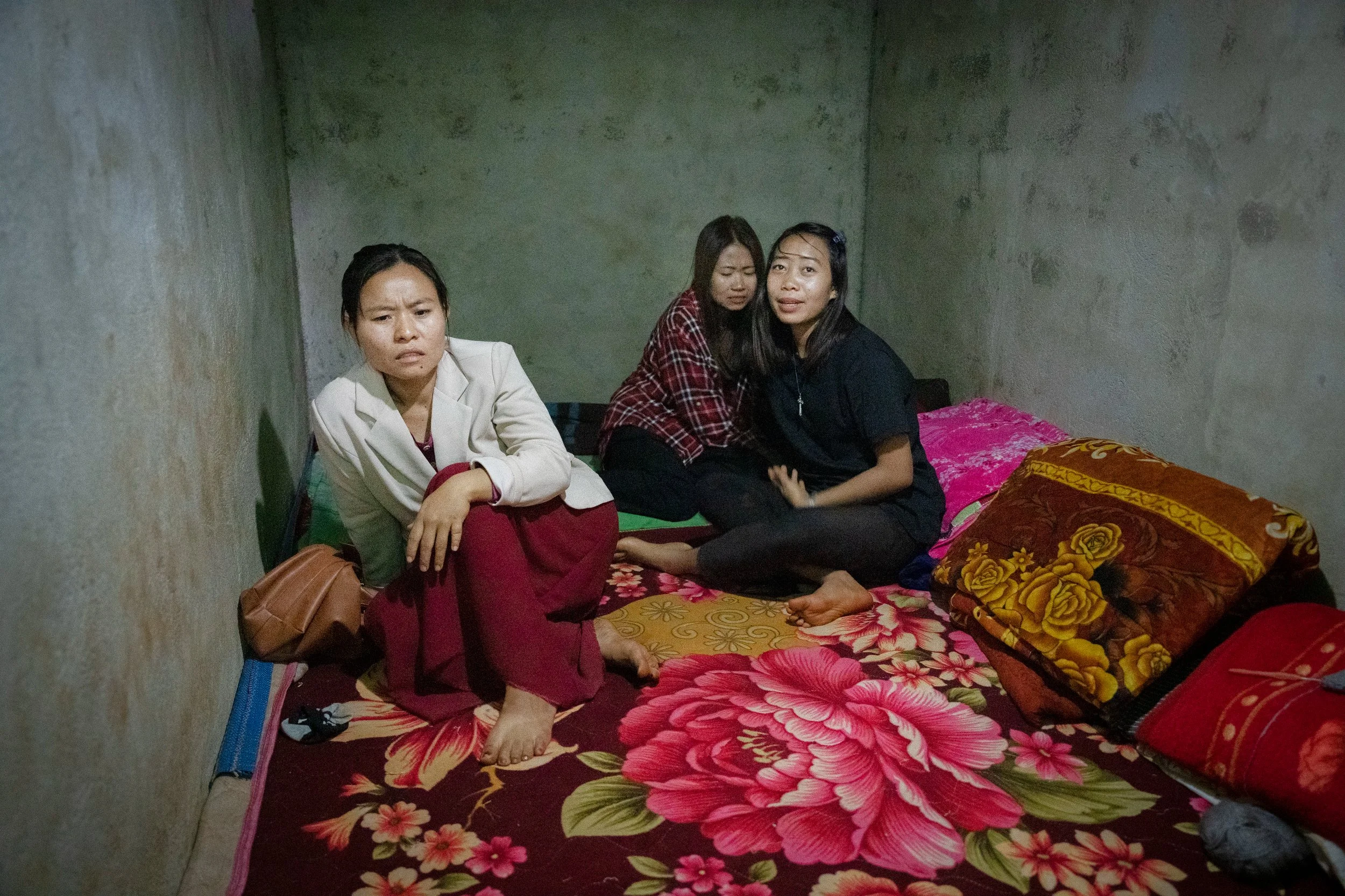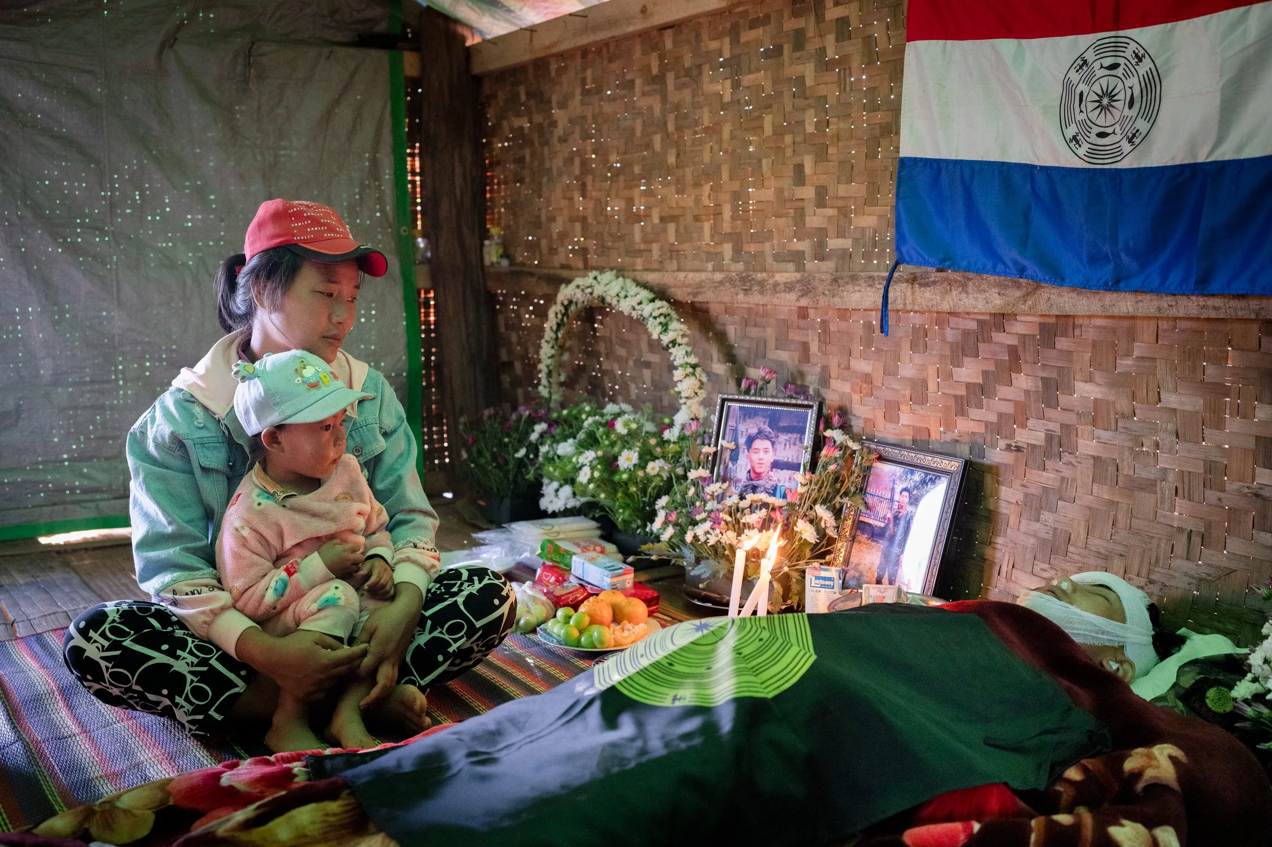 Young family mourning a Karenni fighter killed by a sniper of the military junta. Demoso, Myanmar, 2023